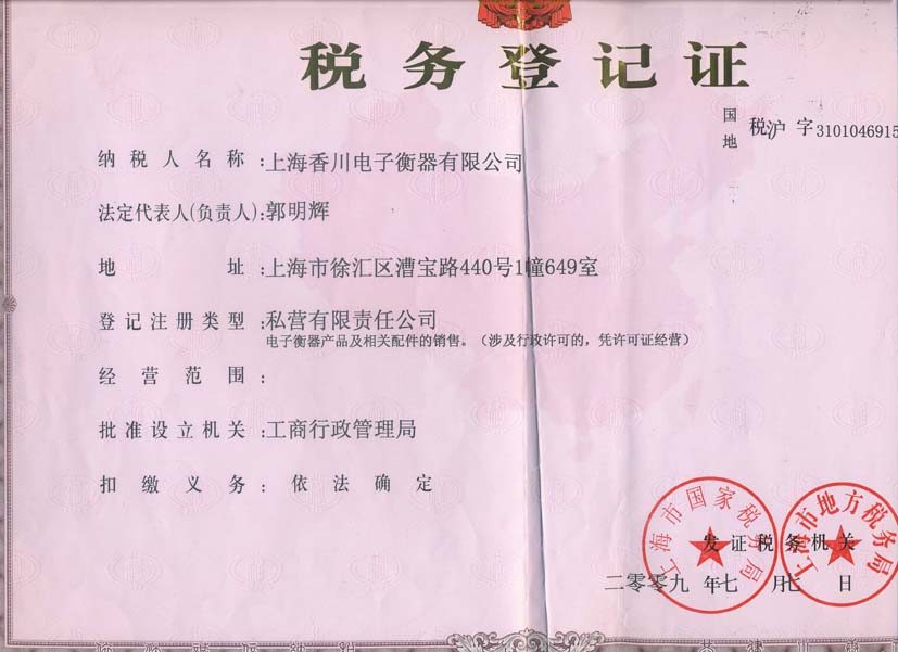 • 稅務登記證