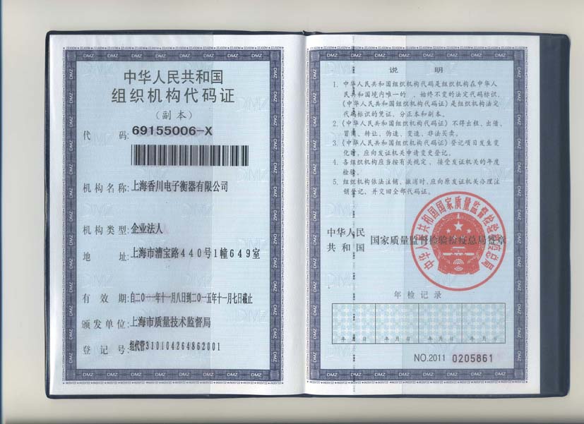 • 組織機構代碼證